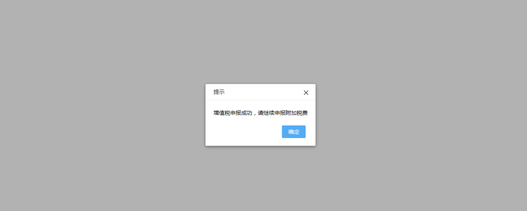 (5)增值税申报成功后,系统返回增值税申报成功,点击【确定】按钮可进行附加税申报;