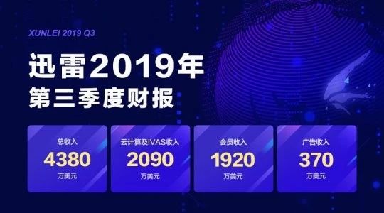 11月14日晚,迅雷公布了2019年第三季度未经审计财报。财报显示,迅雷第三季度营业收入为4380万美元。其中,包括云计算在内的其他互联网增值服务收入为2090万美元,同比上涨5.5%。财报进一步披露,由于客户对共享计算服务的需求增加,迅雷云计算业务的收入仍在持续增长。