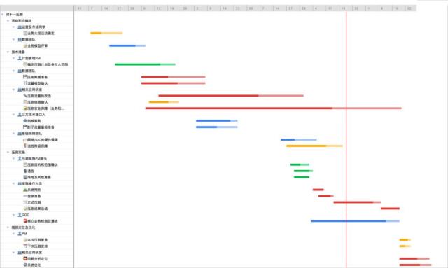 阿里巴巴全链路压测从2013年到现在也已经是第7个年头了,在这7年中间我们不断的积累、总结、优化进步,从开始的200多人参与、通宵压测的大规模全员项目活动到后来仅仅几个人白天压测、更智能化的压测方式,这样一种大规模的项目活动,离不开有效的流程把控及分工管理。