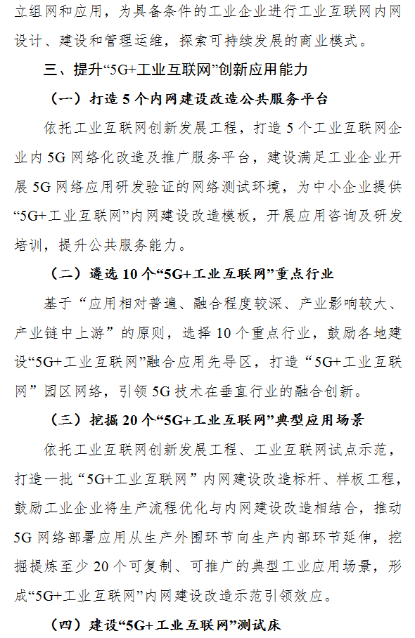 3.加快垂直领域“5G+工业互联网”的先导应用,内网建设改造覆盖10个重点行业;