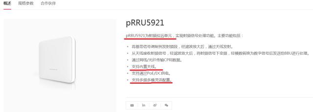 华为的Lampsite室分系统解决方案,属于有源室分,PRRU5921是安装在楼宇里面的“小盒子”,它是Lampsite解决方案的一部分,,而支持的多频多模,笔者猜测很大可能是针对一家运营商2G/3G/4G/5G