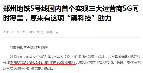 目前有一些新型的泄露电缆开始支持5G(2.6GHz与3.5GHz)信号,在郑州、石家庄、济南等地得地铁内也进行了相关建设。铁塔公司相关负责人表示,“这些项目还是处于试点阶段,没有大规模的推广开。这些试点实际上是铁塔公司联合相关厂家实地调试设备,之前设备不支持5G,现在与设备制造商合作进行技术攻关,调试设备的应用效果。但有些频段还没有完全打通,因为5G分为2.6GHz、3.5GHz、4.8GHz几个频段,这些频段有的已经打通,有的还在攻关。”