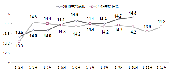 图4 2018-2019年1-10月软件业从业人员工资总额增长情况