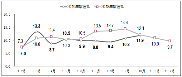 图1 2018年-2019年1-10月软件业务收入增长情况