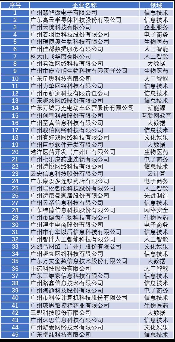 2019年广州未来“独角兽”创新企业榜单