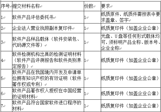 1、新评估软件产品需要提交以下材料: