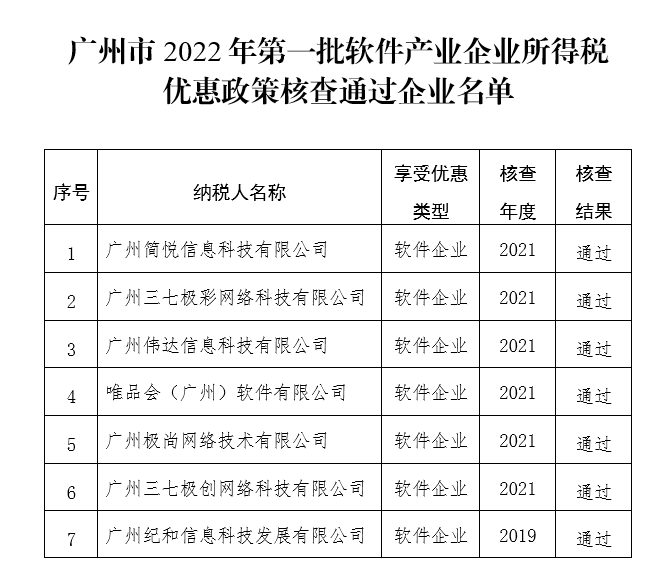 根据《广东省工业和信息化厅关于核查2022年申报享受软件产业企业所得税优惠政策企业名单的通知》的要求和工作部署,我局对广州市2022年第一批申报享受软件产业企业所得税优惠政策的企业是否符合政策条件进行了核查,现将核查结果予以公示,公示期为5个工作日(7月1日—7月7日)。