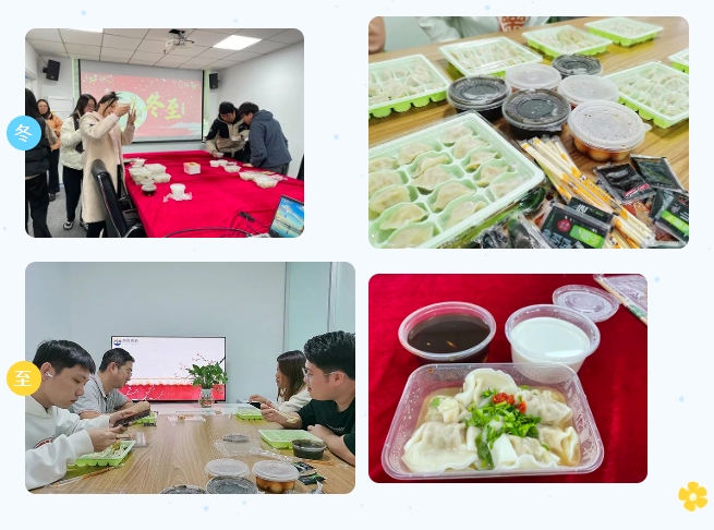 又是一年冬至节气,为传承和弘扬传统文化,丰富员工业余生活,营造健康和谐、积极向上的工作和生活氛围,增强员工凝聚力,2023年12月22日,中检赛辰技术服务有限公司(简称“赛辰”)提前为全体员工准备了热气腾腾的汤圆和饺子,让员工在寒冷的冬日里感受到别样的温暖,我们一起过冬至。