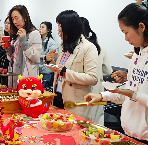 我们的小伙伴们笑语盈盈,共享美食。大家一边品尝,一边愉快地交流着工作与生活中的点滴,活动现场气氛热闹非凡、欢乐慢慢。这次活动不仅满足了大家在工作间隙对美食的渴望,更给予了我们一份深切的温暖与关怀。