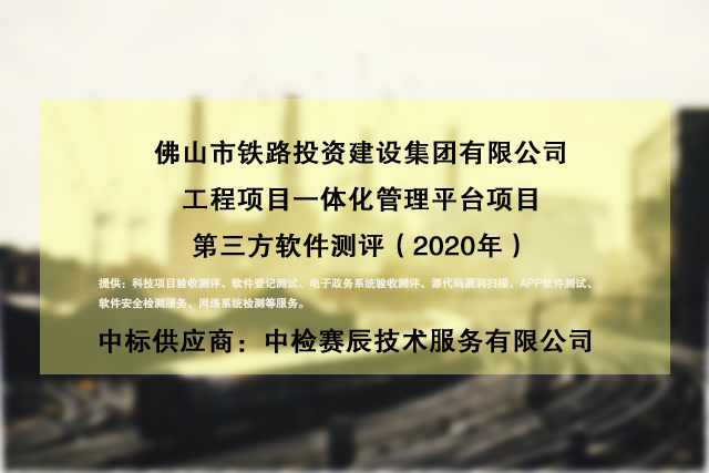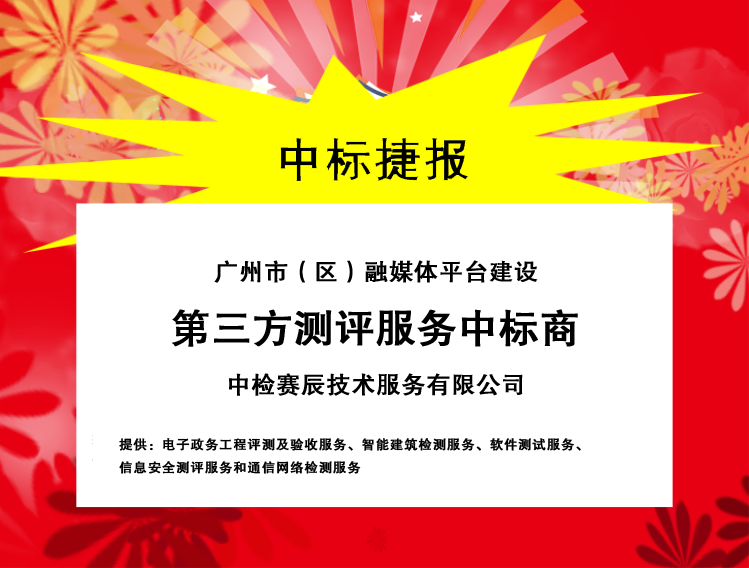 捷报频传!2020年5月29日中检赛辰技术服务有限公司(简称:赛辰)成功中标广州市(区)XX平台建设验收测评服务,中标金额:338000元。