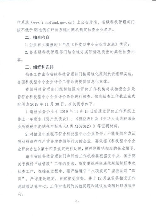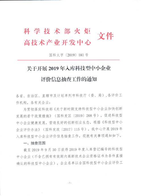 关于开展2019年入库科技型中小企业评价信息抽查工作的通知