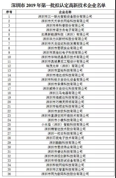 根据《高新技术企业认定管理办法》(国科发火〔2016〕32号)和《高新技术企业认定管理工作指引》(国科发火〔2016〕195号)有关规定,现将深圳市2019年第一批3457家企业拟认定高新技术企业名单(详见附件)予以公示,公示期为10个工作日。