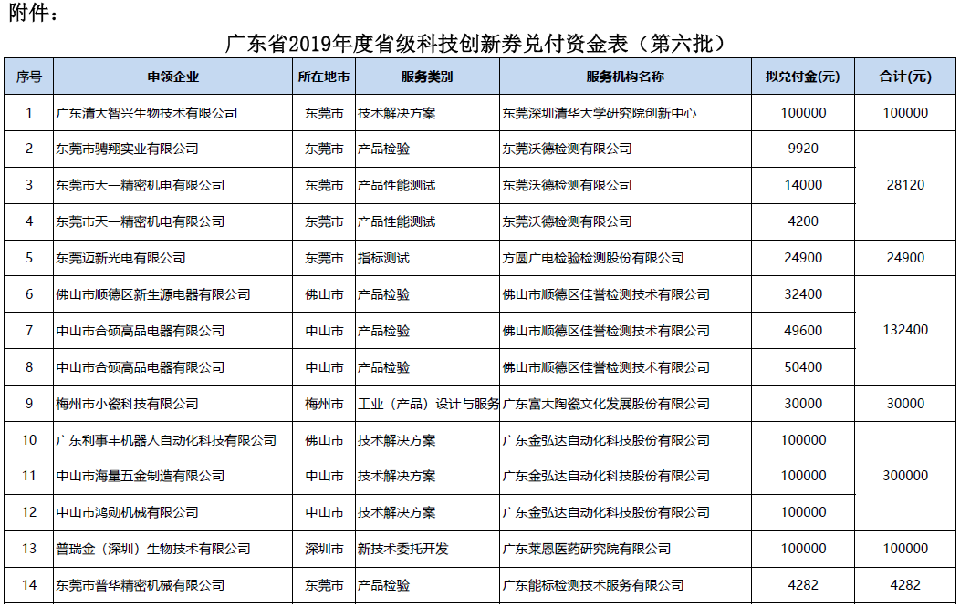 附件:广东省2019年度省级科技创新券兑付资金表(第六批).pdf