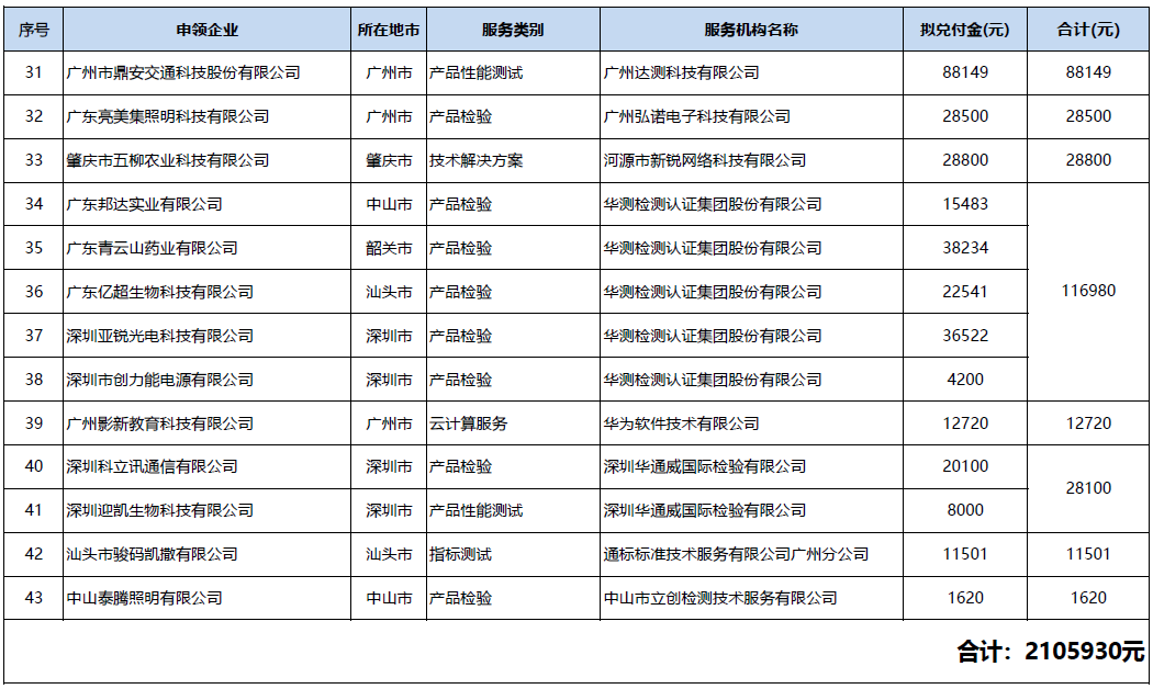 根据《广东省科学技术厅关于组织开展2019年度省级科技创新券申领和兑付工作的通知》(粤科函区字〔2019〕1394号)有关要求,经公示无异议,现将2019年省级科技创新券第六批兑付的43项订单,予以公告,共计兑付资金2105930元(详见附件)。