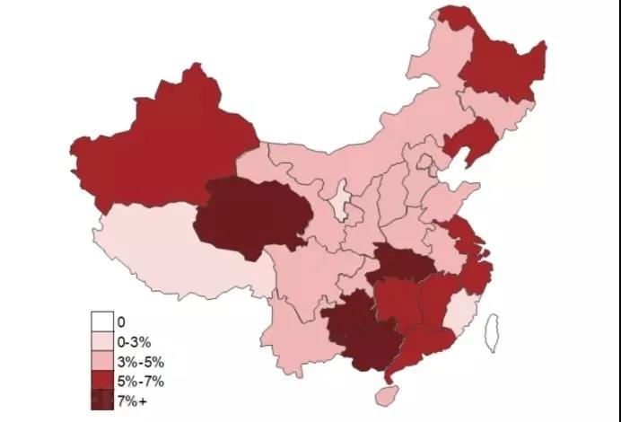 图:各省存在僵木蠕等恶意程序的单位占比情况——《2019健康医疗行业网络安全观测报告》