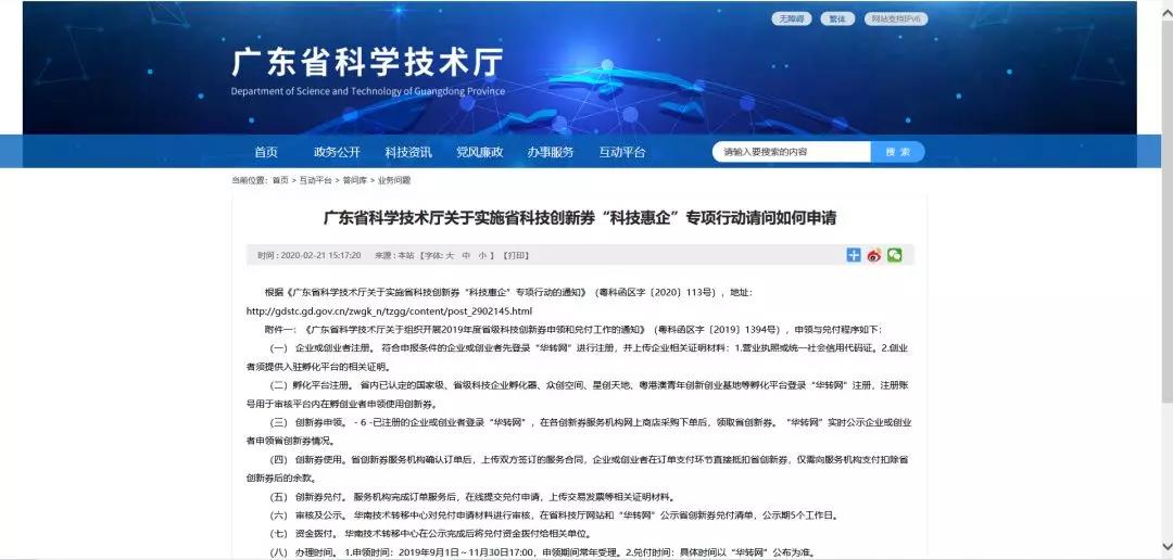 2月21日,广东省科学技术厅发布了《广东省科学技术厅关于实施省科技创新券“科技惠企”专项行动请问如何申请》,为科技型中小企业申领创新券指明道路。