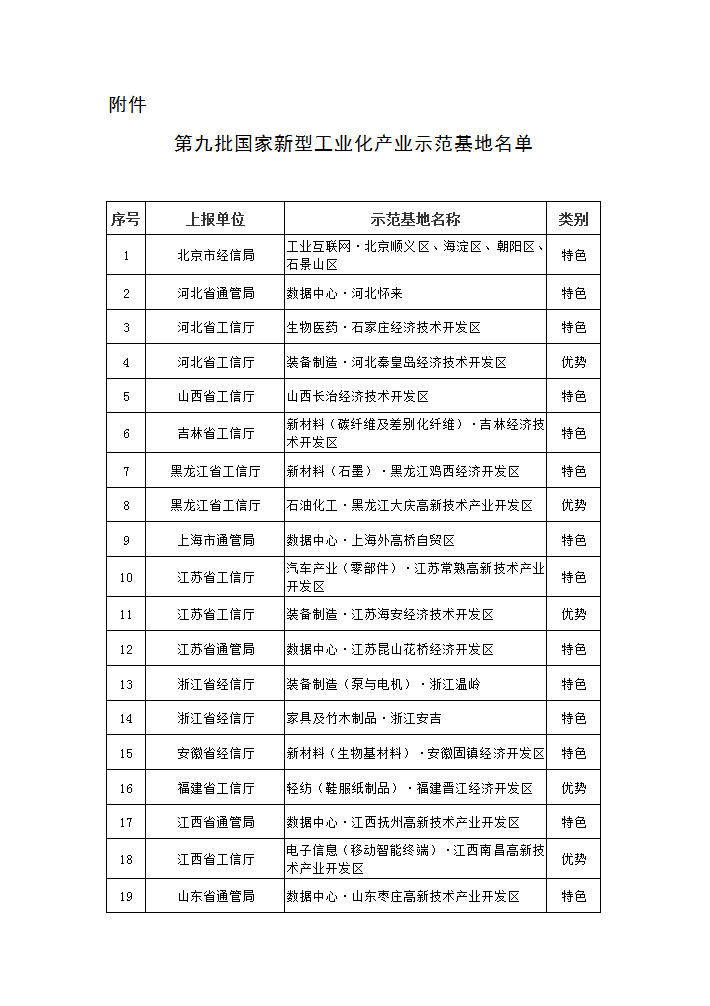 根据《国家新型工业化产业示范基地管理办法》(工信部规〔2017〕1号)及《关于组织申报2019年度国家新型工业化产业示范基地的通知》(工信厅规函〔2019〕145号)要求,经评审和公示,同意石家庄经济技术开发区等39个产业集聚区为国家新型工业化产业示范基地,现予以公布。有关事项通知如下: