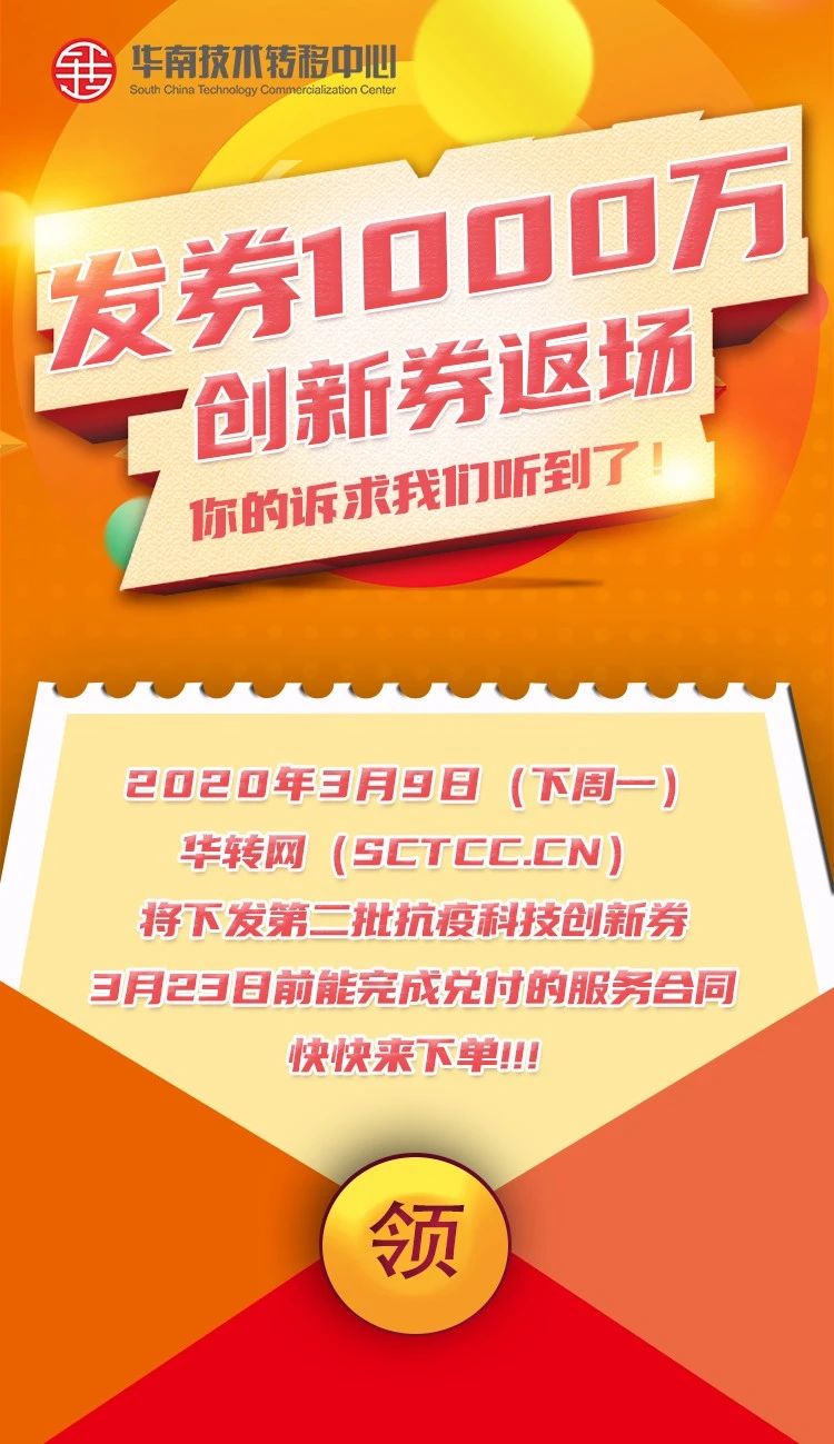终于,新一批创新券1000万元额度确定!将于3月9日(周一)9:00准时发放。执行标准参照抗疫创新券,珠三角40%,粤东西北45%。(温馨提醒:兑付截止时间为3月23日,如果在规定时间前无法完成兑付服务,建议等待申请2020年度创新券使用。)