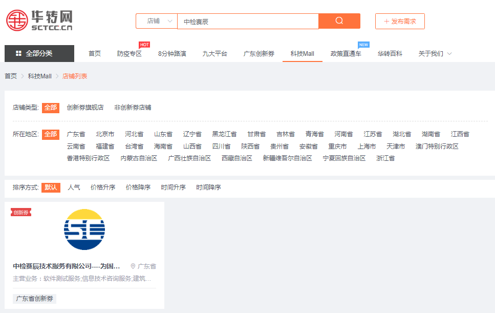 领到科技券后,企业/创业者在“华转网”-科技Mall-输入“赛辰”或“中检赛辰”搜索到中检赛辰店铺,下单,并勾选“使用创新券”。下单后卖家将获得企业联系方式,并安排专人对接。